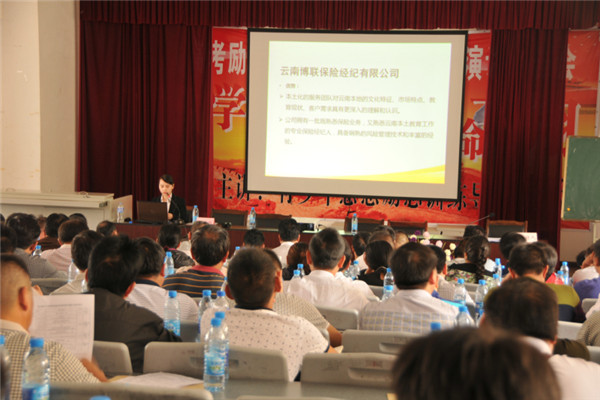 根據(jù)《云南省教育廳關(guān)于舉辦中小學(xué)校園風(fēng)險管理培訓(xùn)班的通知》(云教函[2015]317號)文件要求,為切實提高基層學(xué)校風(fēng)險防控的能力,建立健全學(xué)校保險體系,文山州教育局于2015年9月16日在文山州一中舉辦了2015年全州中小學(xué)校園風(fēng)險管理培訓(xùn)班。文山州所轄各級各類學(xué)校校長、教育主管部門相關(guān)領(lǐng)導(dǎo)近300人參加了此次培訓(xùn)。此次培訓(xùn)會有州教育局計財科山科長主持,州教育局許副局長出席并做了重要講話。他強調(diào):要進一步統(tǒng)一思想,提高對于做好校園風(fēng)險防控管理工作重要意義的認識,充分運用風(fēng)險防控科學(xué)管理機制,有效的轉(zhuǎn)移、處置、化解學(xué)校風(fēng)險,共同創(chuàng)建平安、和諧校園,千方百計確保學(xué)校安全穩(wěn)定和廣大師生平安健康。