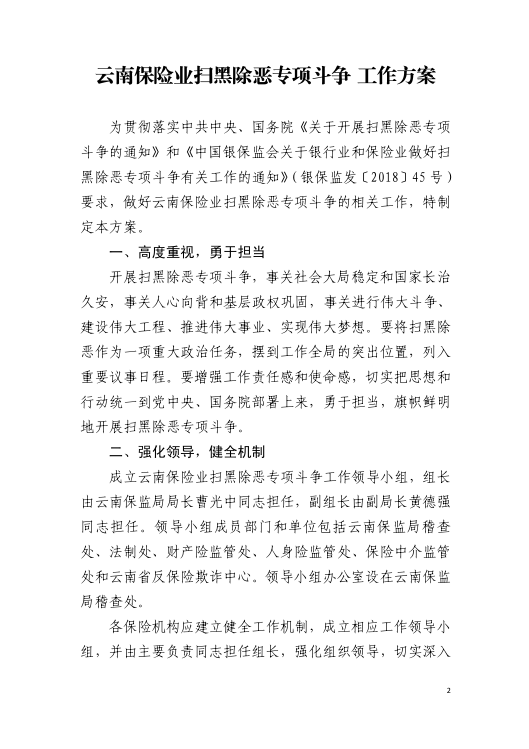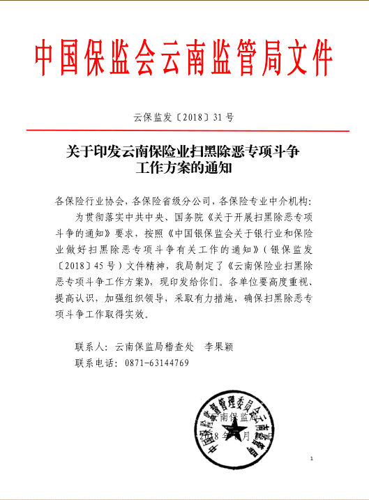 關(guān)于印發(fā)云南保險業(yè)掃黑除惡專項斗爭工作方案的通知